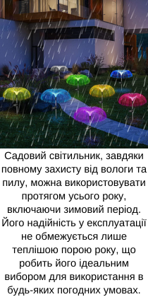 Якщо чесно, не сподівалась що вони будуть виконувати зазначені характеристики, але таки все добре, ми з початку війни переїхали на дачу, де давно не була рука господині. Що спершу почала робити це клумбу. А з цити садовими світильниками мені аж приємніше розвивати свою клумбу. А ввечері взагалі як в казці. Хоч щось може порадувати. Дякую!